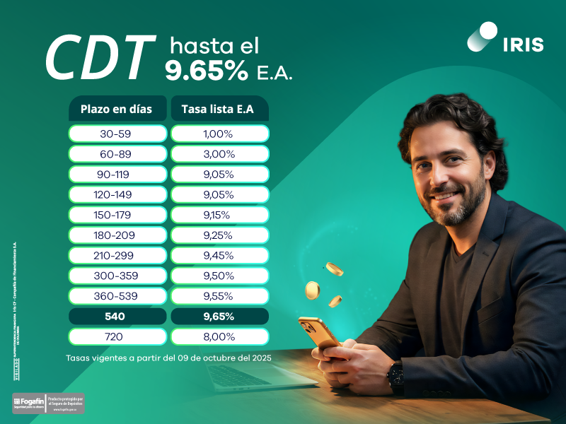Al continuar la navegación, el usuario autoriza que el portal web, IRIS powered by Iris CF – Compañía de Financiamiento S.A., haga uso de Cookies.